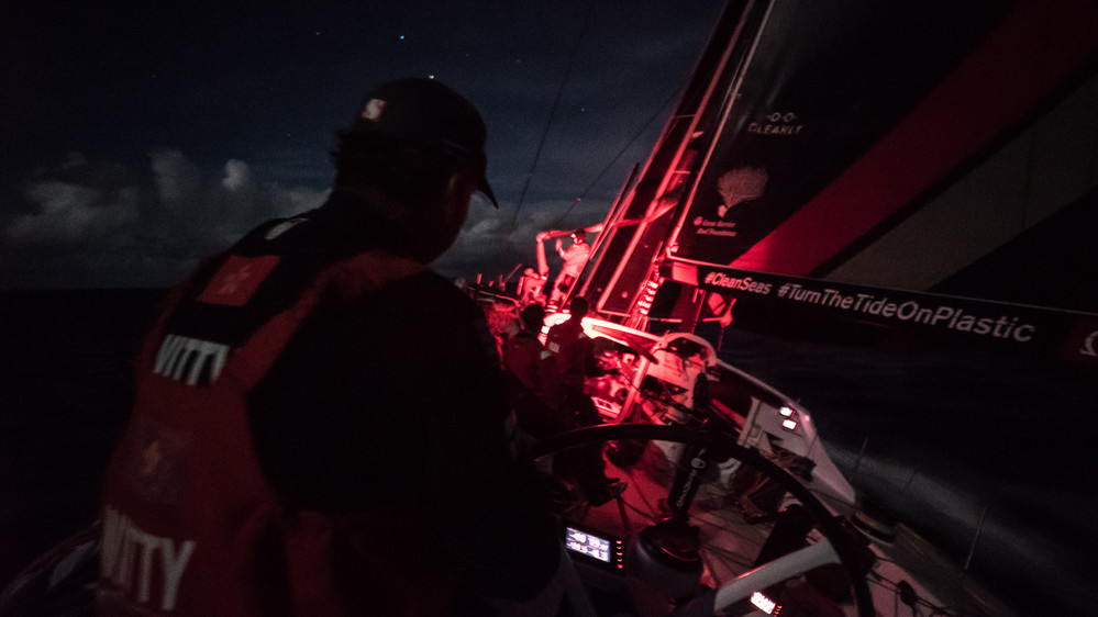 Leg 6 to Auckland, day 20 on board Sun hung Kai/Scallywag. 50 miles to the finish, 20 knots of wind, bright moon, flat water, what else can you ask for? 27 February, 2018.